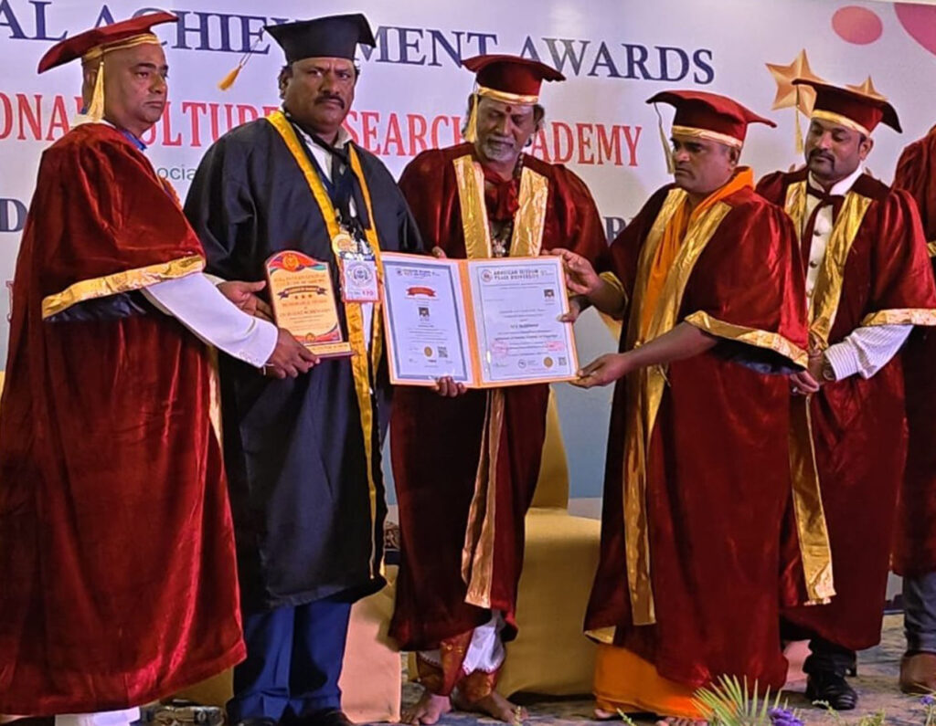 ಮುದ್ದೇಬಿಹಾಳ : ಅಮೆರಿಕನ್ ವೀಸಡಂ ಫೀಸ್ ಯೂನಿವರ್ಸಿಟಿ ವತಿಯಿಂದ ಶನಿವಾರ ಹೊಸೂರಿನಲ್ಲಿ ಆಯೋಜಿಸಿದ್ದ ವಿಶೇಷ ಕಾರ್ಯಕ್ರಮದಲ್ಲಿ ಮುದ್ದೇಬಿಹಾಳ ತಾಲೂಕಿನ ಆರ್ಡಿಪಿಆರ್ ಇಲಾಖೆಯ ಉದ್ಯೋಗಿ ಹಾಗೂ ರಾಷ್ಟ್ರಮಟ್ಟದ ಕ್ರೀಡಾಪಟು ಎಂ.ಕೆ. ಗುಡಿಮನಿ ಅವರಿಗೆ ಗೌರವ ಡಾಕ್ಟರೇಟ್ ಪ್ರದಾನ ಮಾಡಿ ಗೌರವಿಸಲಾಯಿತು.