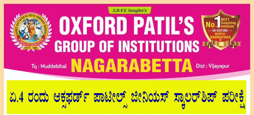ಪರೀಕ್ಷೆಯು ಏ.4 ರಂದು ಮದ್ಯಾಹ್ನ 12ಕ್ಕೆ ಮುದ್ದೇಬಿಹಾಳ ತಾಲ್ಲೂಕಿನ ನಾಗರಬೆಟ್ಟದಲ್ಲಿರುವ ಆಕ್ಸಫರ್ಡ್ ಪಾಟೀಲ್ಸ್ ಪಿಯು ಸೈನ್ಸ್ ಕಾಲೇಜಿನಲ್ಲಿ ನಡೆಯಲಿದೆ.ಪರೀಕ್ಷೆಯಲ್ಲಿ ಭಾಗವಹಿಸುವರು ತಮ್ಮ ಹೆಸರು-ತರಗತಿ-ಶಾಲೆ ಹೆಸರು-ವಿಳಾಸ-ಮೊಬೈಲ್ ಸಂಖ್ಯೆ ಟೈಪ್ ಮಾಡಿ ಮೊ.9680095756 ಸಂಖ್ಯೆಗೆ ಕಳಿಸಬಹುದಾಗಿದೆ.ಹೆಚ್ಚಿನ ಮಾಹಿತಿಗೆ ಮೊ.7483147040,8310035858,9019460665 ಸಂಪರ್ಕಿಸಬಹುದಾಗಿದೆ.